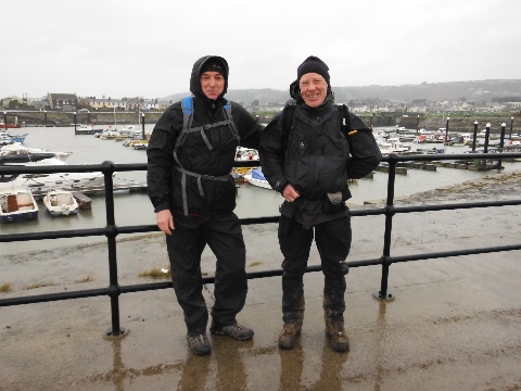 Dewi's wife, Hazel, drove us to Burry Port and we set off at 09.30 heading straight into the rain.
