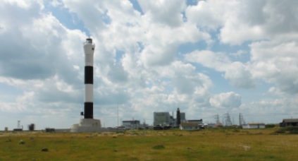 A private road turned off to head directly to the Nuclear Power Station at Dungeness and as the map showed a public footpath crossing this fenced road to get to the lighthouse I started walking down it.