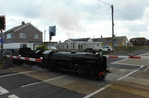 The steam train was a small narrow gauge affair, the Romney, Hythe and Dymchurch Railway, with the coaches just 2 persons wide and only room to sit.