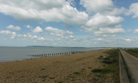 There were houses all along the landward side of the road, mostly just the one house deep, and I went through Lydd-on-Sea, Greatstone-on-Sea and as far as Littlestone-on-Sea, New Romney, where the campsite was. It was 15.40 when I got there.