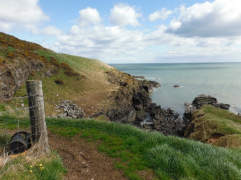 Crossing the footbridge over Bervie Water there was a footpath going up the side of the sloping cliff, once up on the top the path soon disappeared but I was able to walk along the side of the field boundary fences, usually on the sea side.
