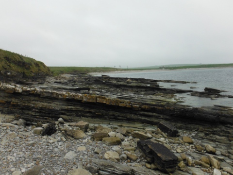 We walked outside the fields again for a bit then had to get down onto the rocky shore, the relatively horizontal rocky slabs were a big improvement on stones.