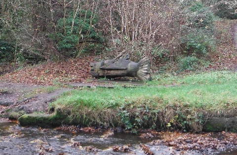 I stopped by the river to finish off my lunch, sitting on a tree trunk which had been carved into a fish.