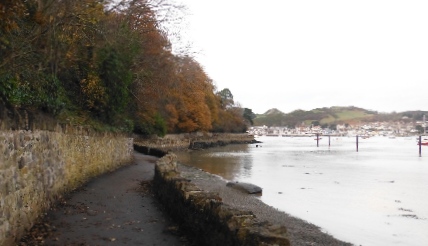 The next 4 miles, as far as the car park near the grounds of Penrhyn Castle were on the grassy bank of the shore.